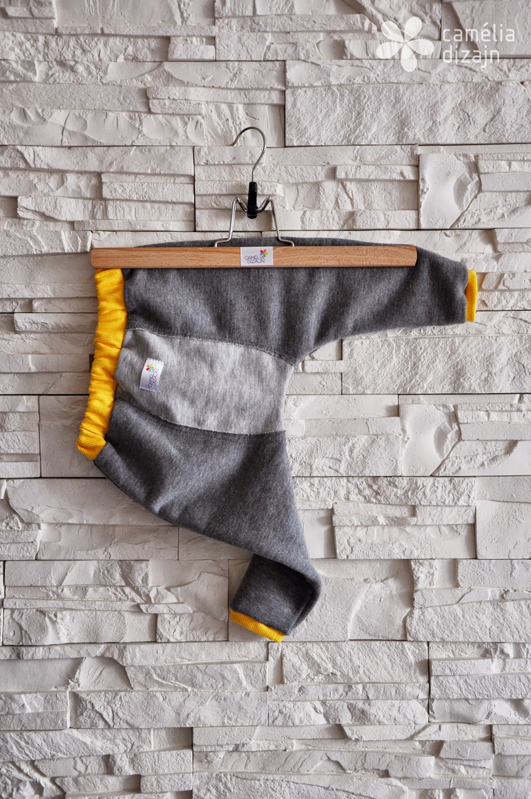 z tyłu kieszenie w kształcie rękawiczek z szarej dresówki.